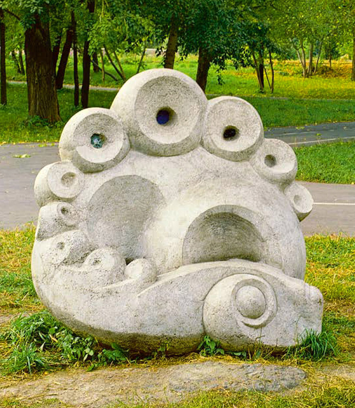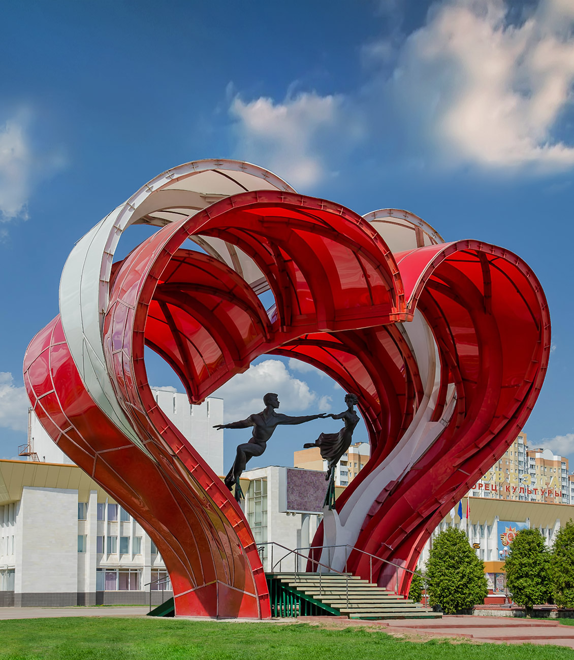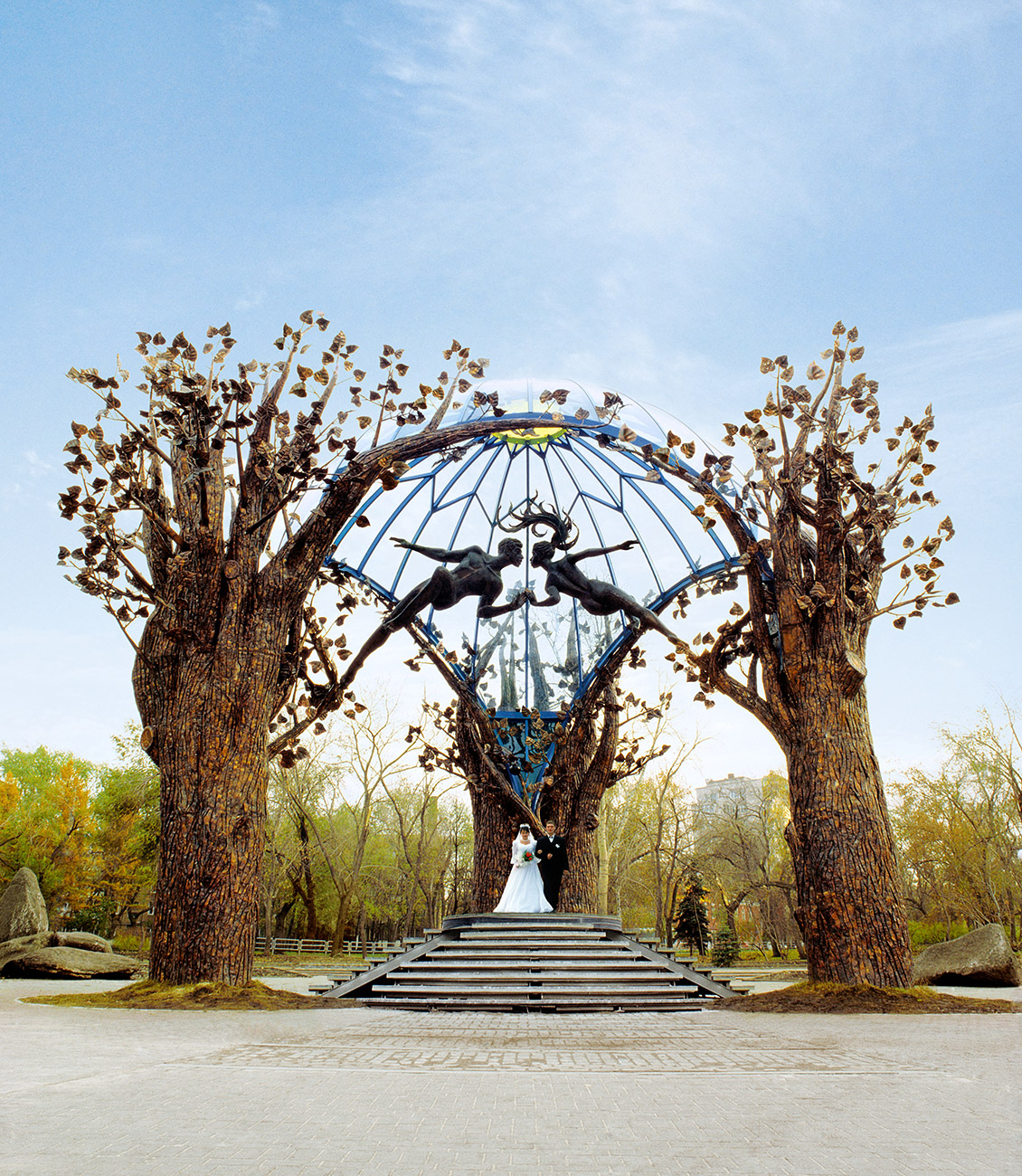 Three supports symbolize the Tree of Life; a dome above them — the Heavenly arch; soaring, rushing towards each other figures of the young man and the girl personify an eternal inclination to love and possession.