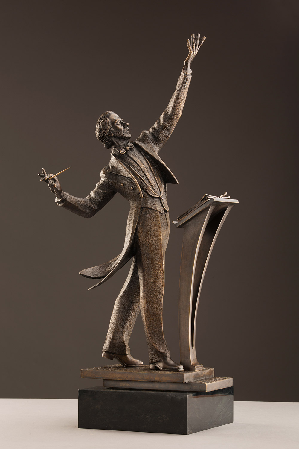 В честь юбилея Валерия Гергиева была создана уникальная скульптура - прообраз, где великий дирижёр запечатлен в творческом порыве, создателем которой является скульптор Виктор Митрошин. Автор торжественно вручает произведение маэстро. 2 мая. Концертный зал имени П.И. Чайковского. г. Москва.