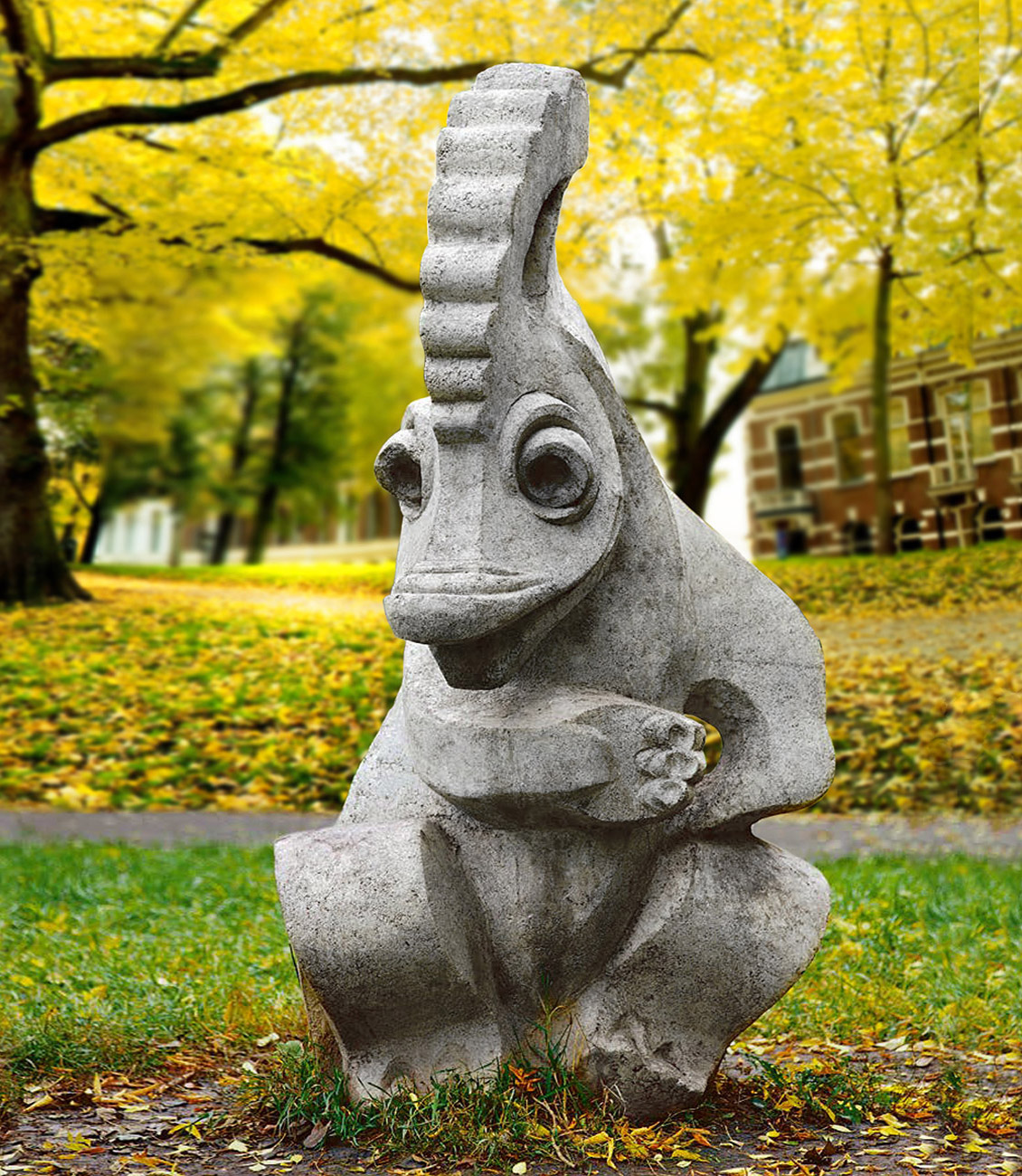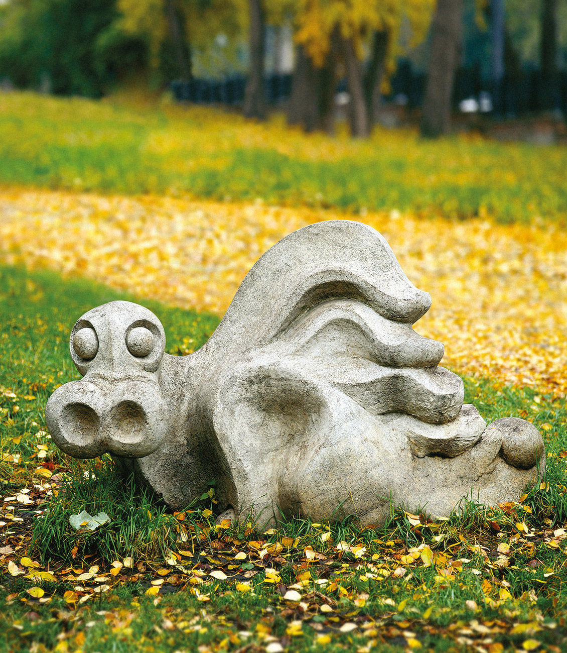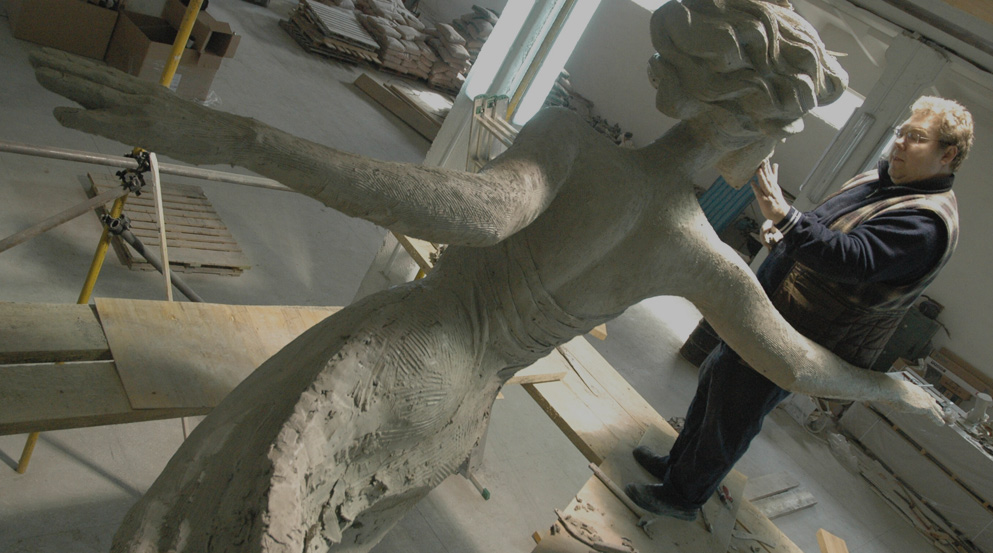 Три опоры символизируют Древо жизни; купол над ними — Небесный свод; парящие, устремленные навстречу друг другу фигуры юноши и девушки олицетворяют вечное влечение к любви и обладанию.
